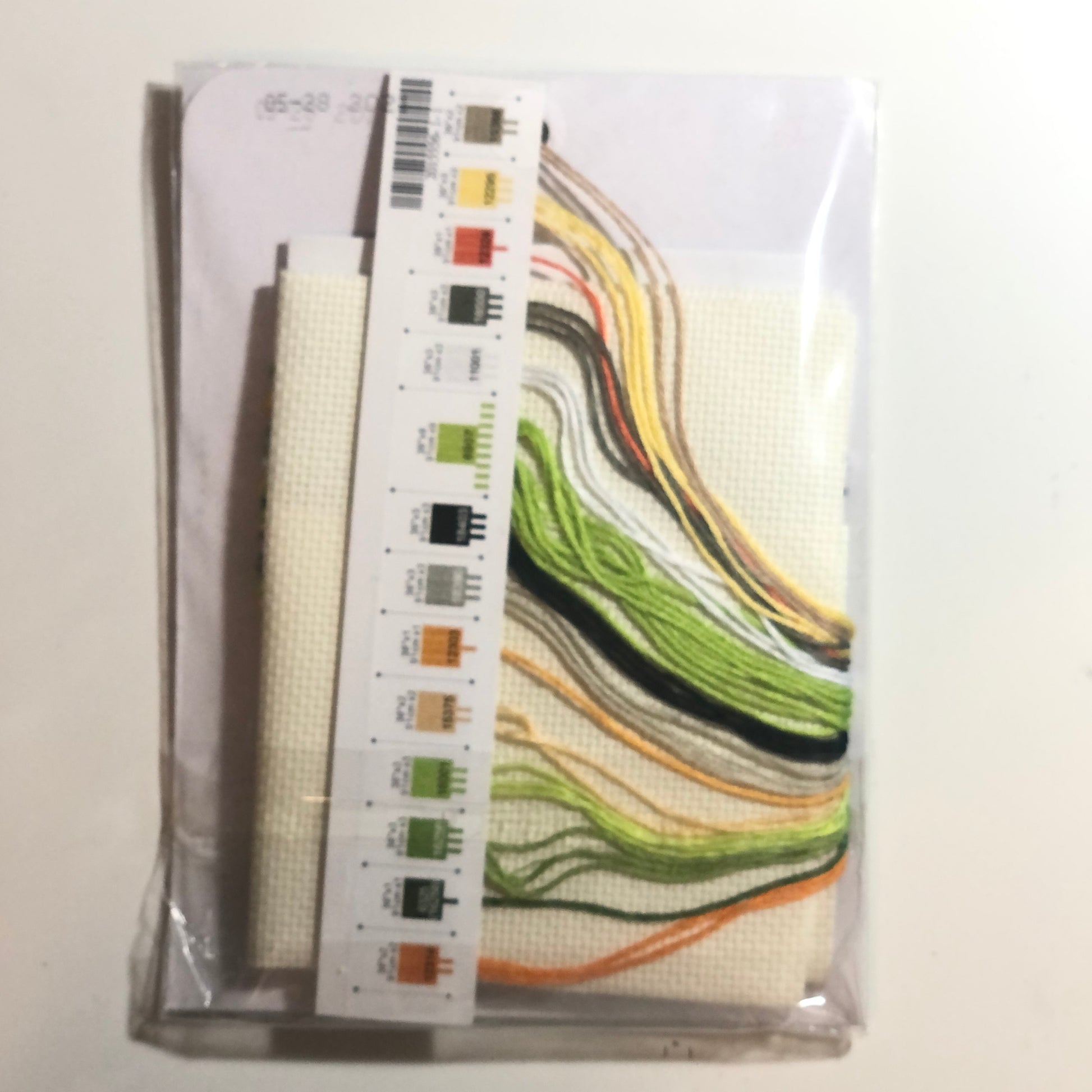 Contains pre-sorted thread, 14 count ivory Aida, needle and instructions.
